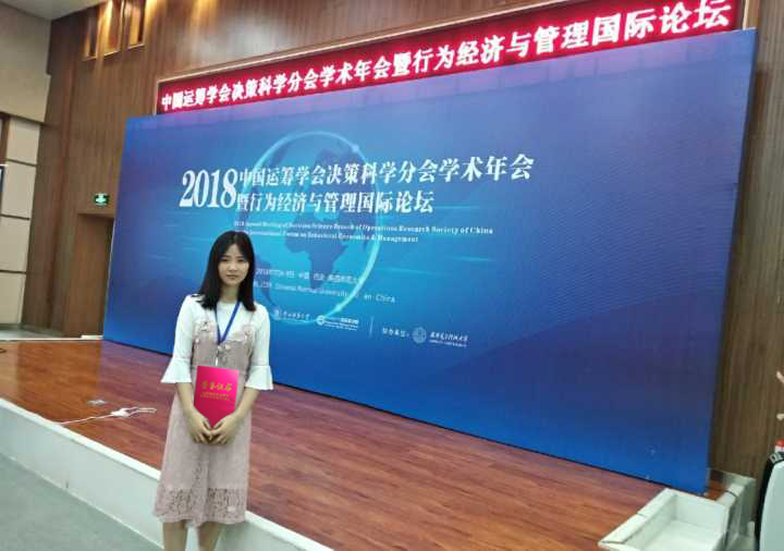 会上,研究生蒋彭燕撰写的学术论文《Research on Renewable Energy Environment Portfolio Based on Bi-level Multi-objective Programming under Hybrid Uncertain Environment》从众多论文中脱颖而出,荣获“2018年中国运筹学会决策科学分会学术年会优秀论文奖”。