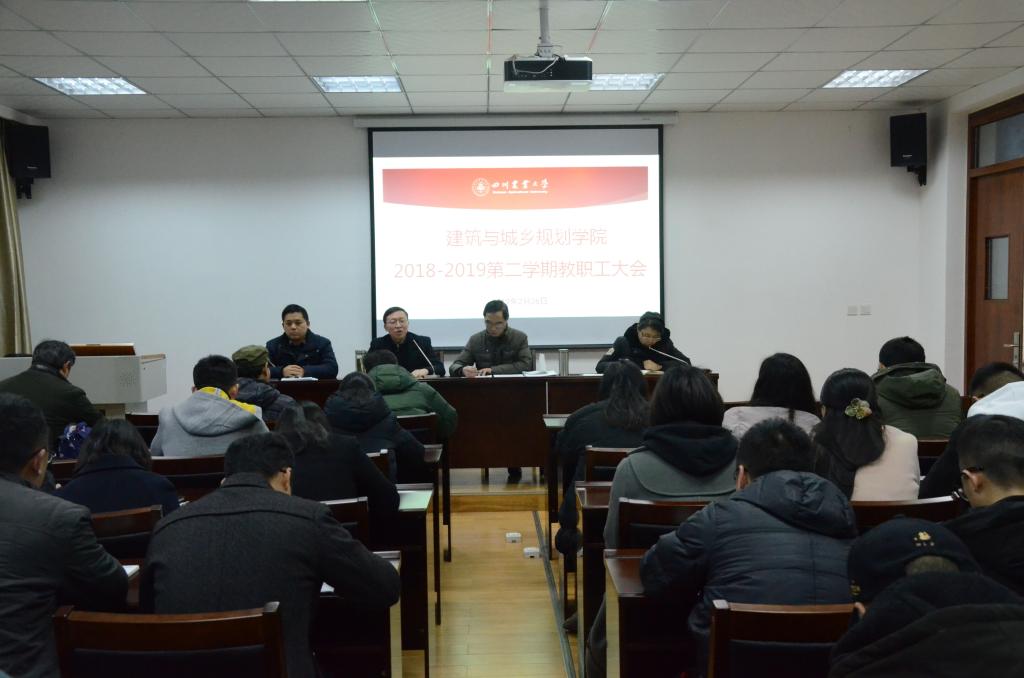 2月26日下午,学院召开新学期全体教职工大会,学习贯彻党中央、省委省政府近期重要文件精神,传达学习学校中心组会议精神及2019年学校工作要点并部署学院新学年工作。学院领导班子及全院教职工出席会议,会议由庄萍萍主持。
