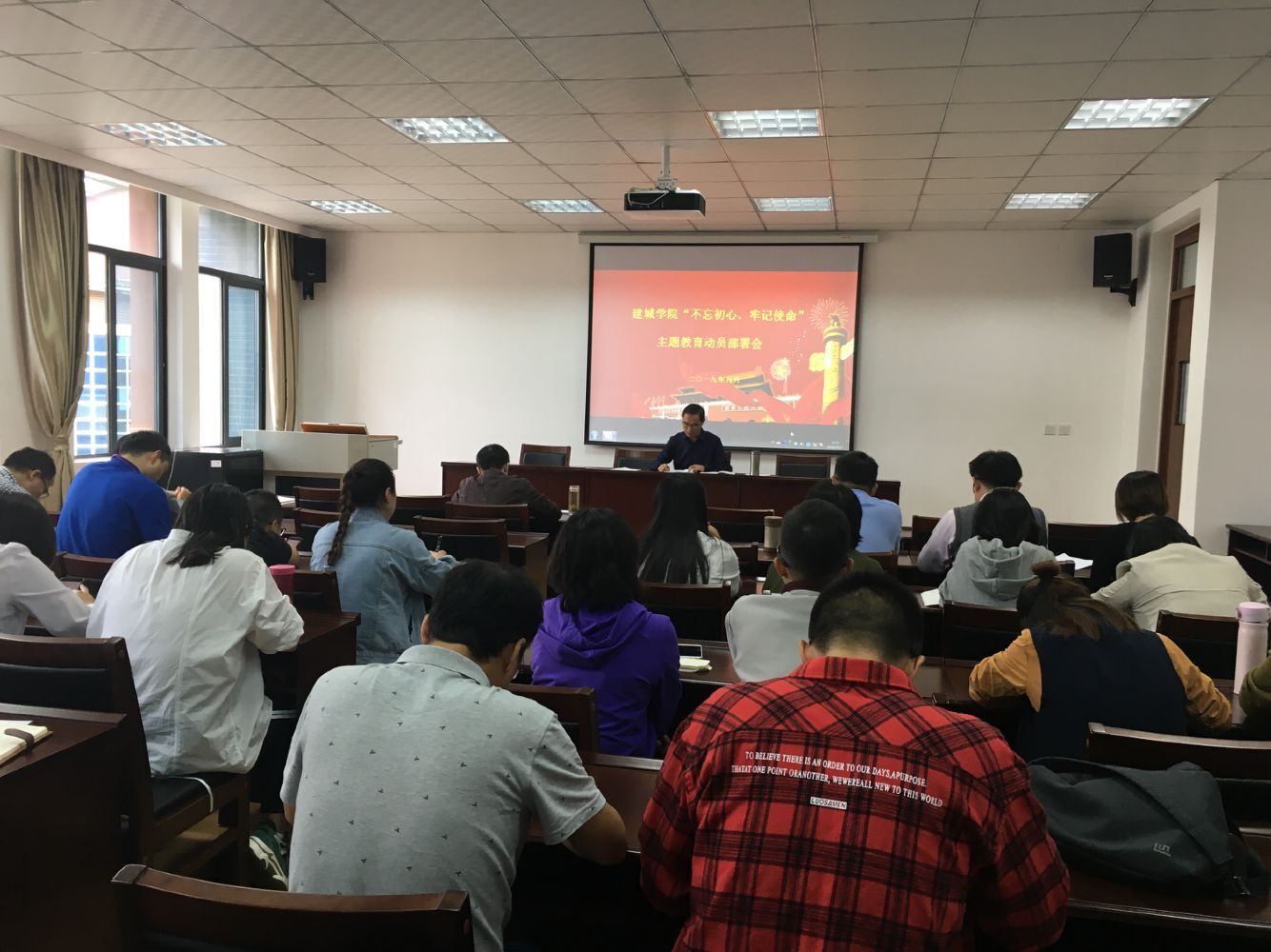 9月17日下午,建筑与城乡规划学院召开“不忘初心,牢记使命”主题教育部署动员会。学院全体领导班子,全体教职工党员参加会议。会议由党委书记申琼主持。