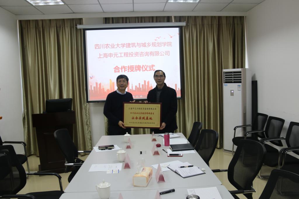 12月10日,建筑与城乡规划学院和上海申元工程投资咨询有限公司院企合作签约授牌暨交流会在学院会议室举行。上海申元工程投资咨询有限公司董事长刘嘉、副董事长刘云一行,学院领导班子和相关系室负责人参加会议。