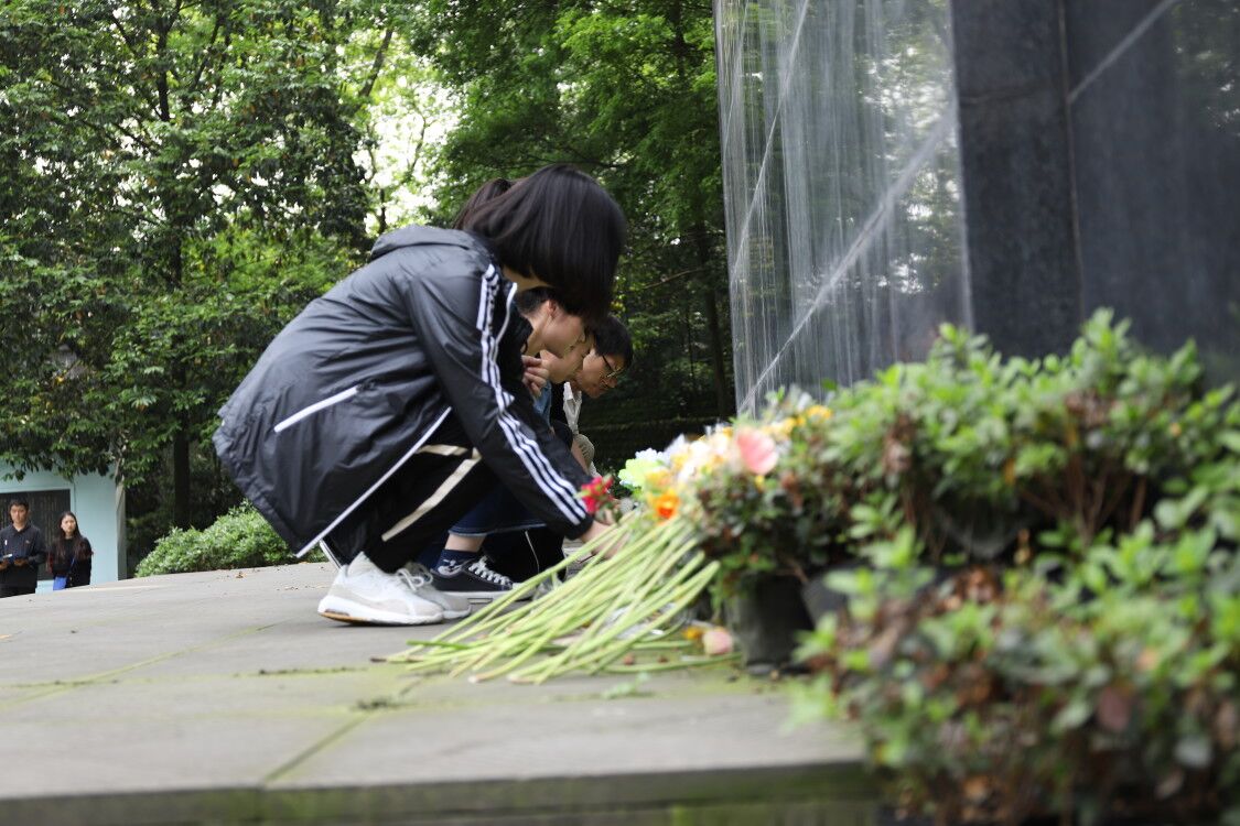 苍松翠柏,英魂常在。停驻在烈士雕像前,全体师生庄严肃穆,齐唱国歌,唱诵的每字每句,诠释着青年们牢记不忘初心,砥砺前行的理想信念。现场的师生在解说员的深情讲述下,共同回顾了烈士们的光辉事迹,青年团员们重温了入团誓词,齐唱《中国共青团团歌》,并依次为烈士纪念碑敬献鲜花。