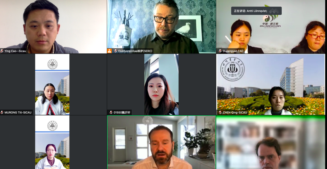 为搭建校国际间交流合作平台,促进师生可持续发展,3月18日下午,建筑与城乡规划学院与芬兰SERC联盟、芬兰坦佩雷大学举行线上视频会议,就双方关心的城市可持续发展国际合作研究与本科生教育合作进行研讨。学院副院长曹迎、国际合作与交流处陈庆副处长、都江堰市政府外事办主任及SERC联盟协调人Esa,Antli教授和Juho教授等9人参加会议。