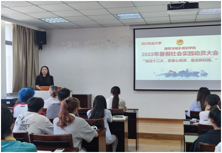 为深入学习贯彻习近平总书记系列重要讲话精神,团结引领全校广大青年坚定不移听党话、跟党走,胸怀“国之大者”,担当使命任务,以青春建功行动迎接党的二十大召开,以及更好地动员全院同学参加2022年大学生暑期“三下乡”社会实践活动,学院于6月6日在2C405召开了暑期社会实践动员大会。党委办主任杨雪老师、党委办马双老师及团委学生会主干及各小班实践委员参与动员大会。