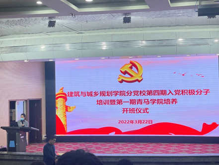 2022年3月22日下午,学院在图书馆报告厅举行了 “建筑与城乡规划学院分党校第四期入党积极分子培训暨第一期青马学院培养开班仪式”。参与本次开班仪式的青马学院学员和入党积极分子共计235人。开班仪式由学院党委办公室主任、团委书记杨雪主持。
