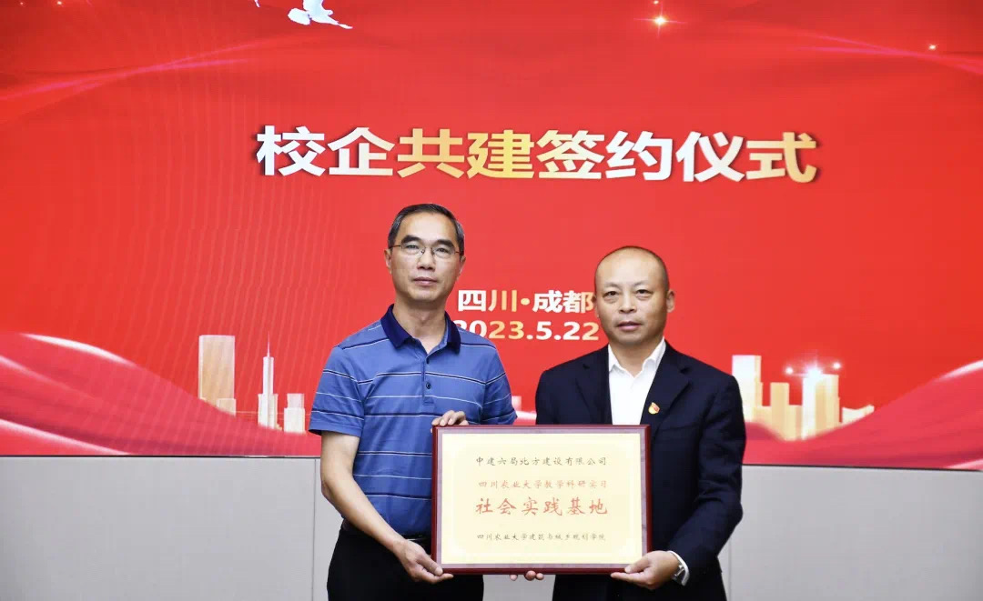 双方座谈交流结束后,申琼和李松作为双方代表签订了校企合作协议,申琼为中建六局北方建设授牌教学科研实习“社会实践基地”,共同见证校企双方合作新篇章。