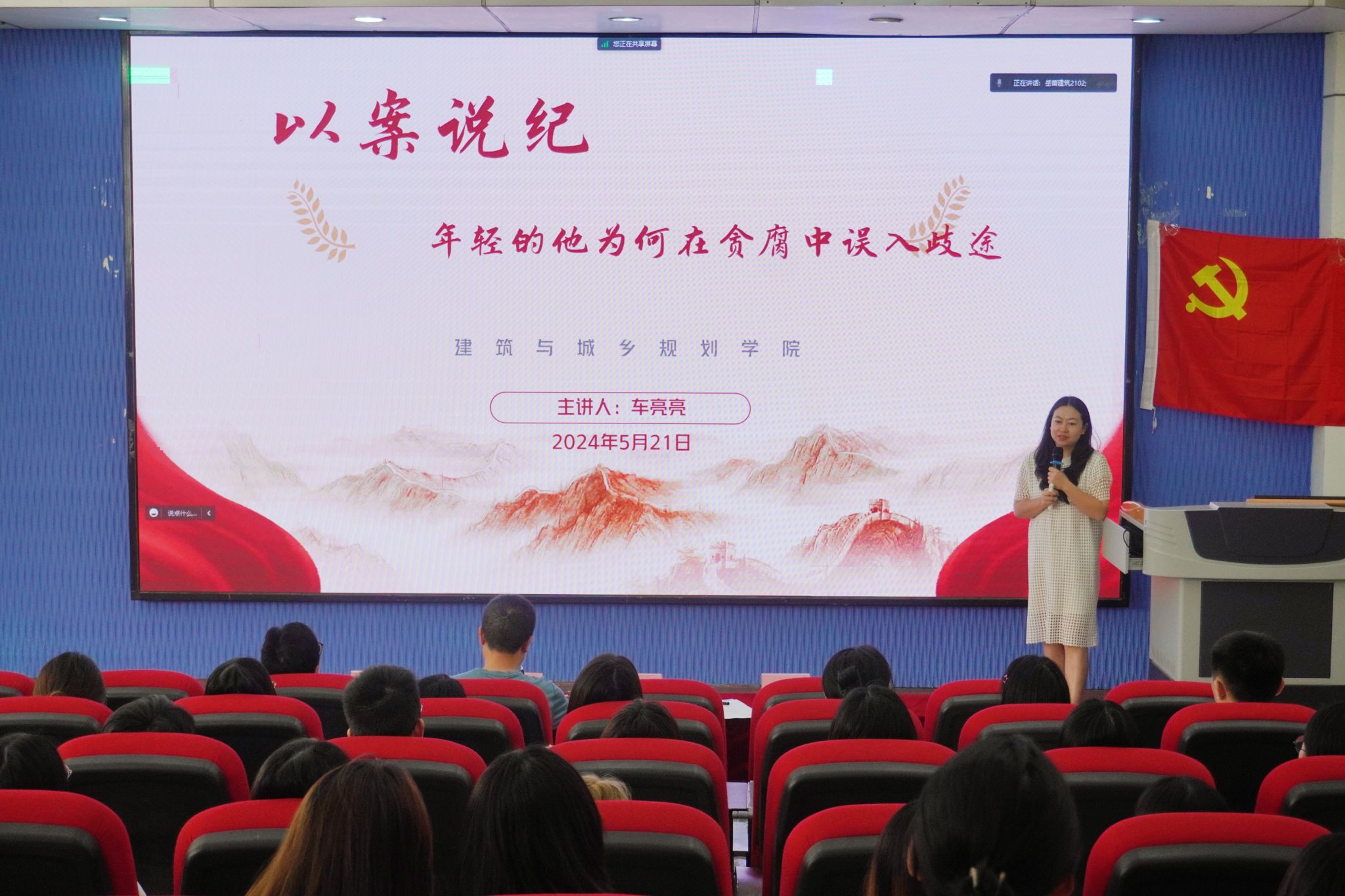5月21日中午,建城学院于4101开展辅导员公开课第7季——《以案说纪——年轻的他为何在贪腐中误入歧途》,引领青年学生党员遵规守纪,扣好廉洁从业的第一粒扣子。学院纪委委员、教工党群支部书记、就业秘书车亮亮老师主讲,全院150余名学生党员参加。