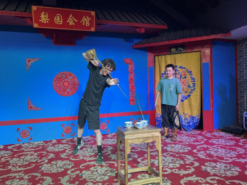 同学们在文殊坊梨园会馆体验长嘴壶技艺
