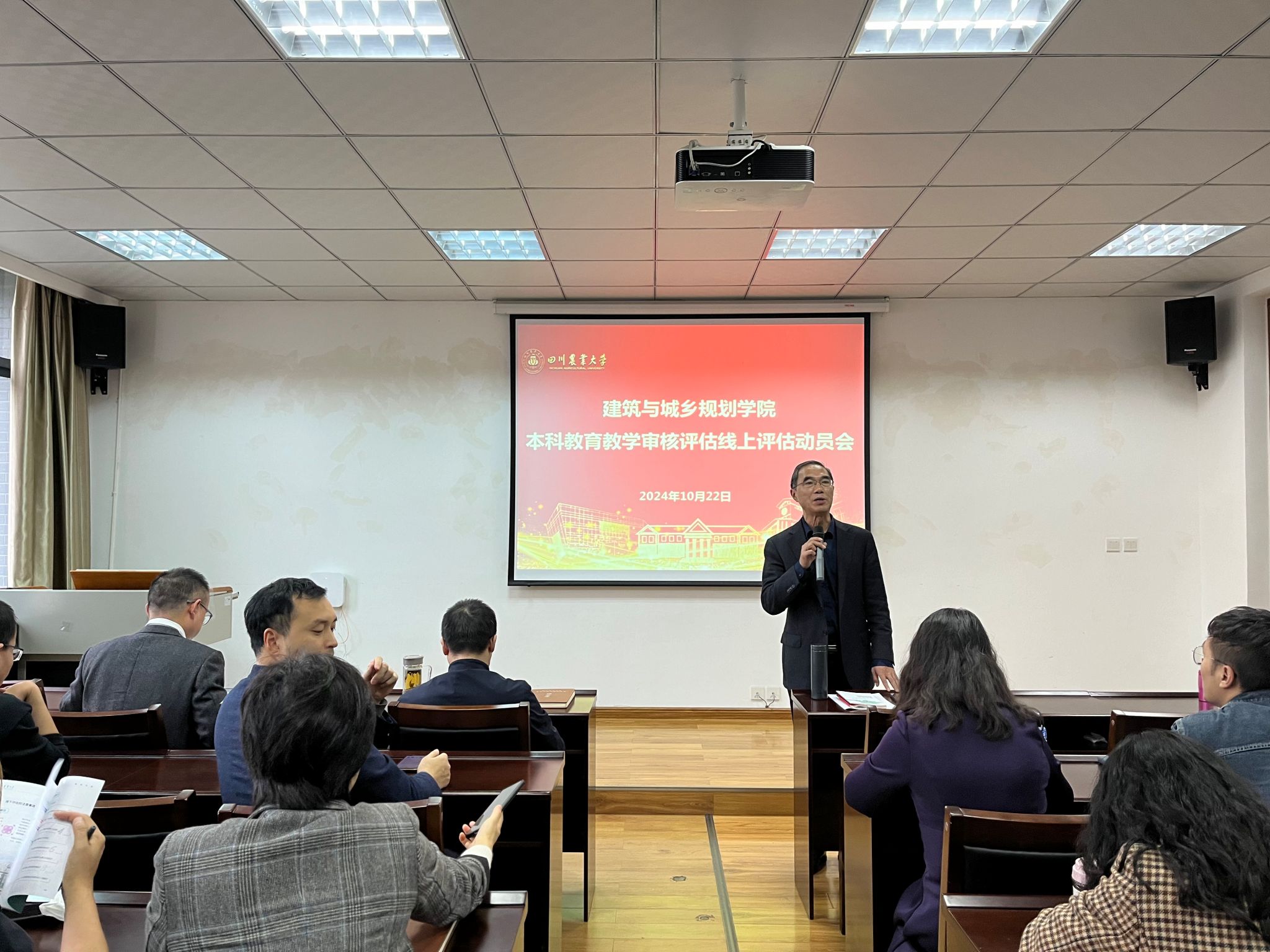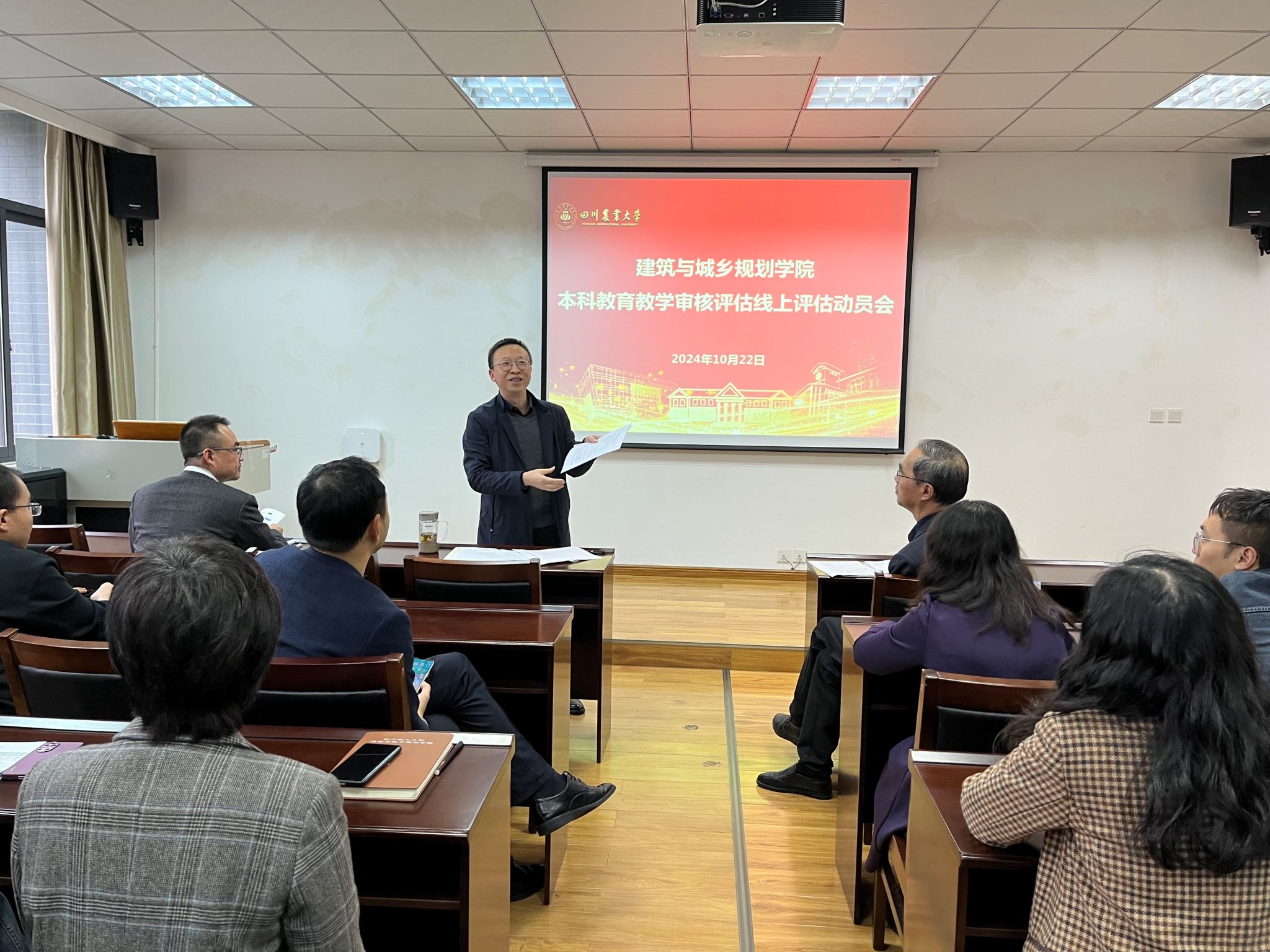 分管本科教学的副院长张凌青对评估工作作出具体部署,并对任课教师强化培训了课堂教学规范。一是要求全体教师明确评估时间,当前务必检查好评估要求的近两年课程资料,包括课程大纲、教案、非卷面考试课程报告、试卷评分标准等;二是教师应做好课堂管理,衣着得体、精神饱满,将思政育人元素融入课堂,将教育教学评估的精神落实到位;三是充分利用信息化教学手段,活跃氛围,做好课堂互动,进一步提升教学效果。