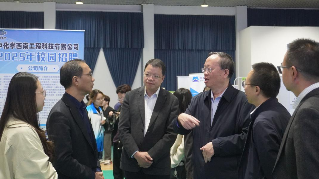 我校党委副书记张强、招生就业处处长廖鹏、副处长王文龙亲临我院展区,与我院党委书记申琼、院长曹云忠及副院长张凌青交流指导学院就业工作,与用用人单位洽谈。