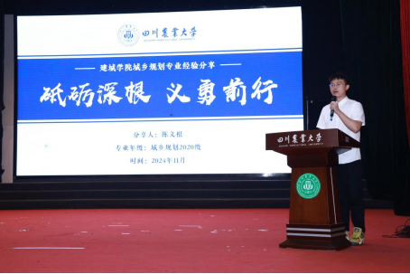 活动伊始,城乡规划专业的7位优秀学生代表王心怡、黄馨桠、蓝晨霖、王诗怡、赖诗睿、陈义根、唐胜圳依次上台分享经验,为台下的同学带来了一场知识与经验的盛宴。每位优秀学生都精心准备,从不同的角度分享自己在专业学习过程中的经验。王心怡同学讲述如何自信前行,踏实谋事,勇敢追梦;黄馨桠同学从个人经历出发,分享如何在繁忙的学业中寻找到生活的平衡点;蓝晨霖同学讲述如何在复杂的课程体系中找到适合自己的学习方法;王诗怡同学结合自身经验感悟,分享宝贵的学习方法;赖诗睿同学分享竞赛与成功保研,变成“六边形战士”的来时路。陈义根同学讲述了如何在挑战中寻找机遇,在困境中磨砺意志;唐胜圳同学则强调了专业学习竞赛和学科融合的自我探索。这些分享内容丰富而实用,台下的同学们全神贯注地聆听,不时在笔记本上记录着重点内容。