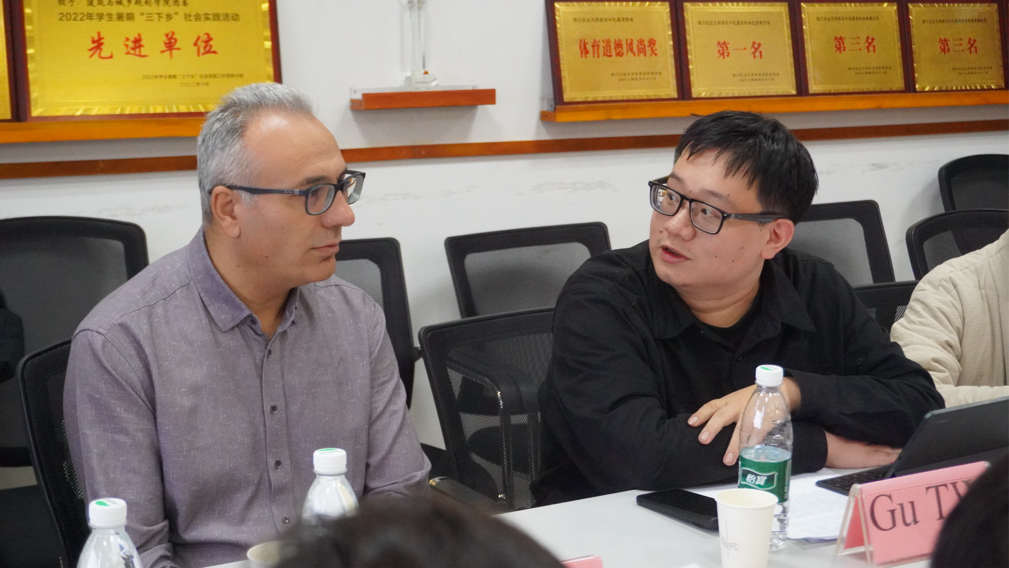 随后,教师代表甘露教授介绍了建筑管理系的主要研究领域,主要包括城镇建设、避灾规划与发展、产城融合等领域的评价与决策理论及相关应用研究。顾天纬老师向其介绍了城乡规划系关于自然基金的科研成果及城乡融合方向特色研究。张丽丽教授向其介绍了建筑系在川西林盘及农村建筑节能方向的研究成果。其他参会老师与Müslüm ARICI教授也针对平衡教学科研时间及论文发表相关问题进行探讨。