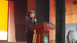 之后由我院第十一届学生会主席团代表徐倩做述职报告。徐倩明确了我院学生会坚持筑牢人才基石、努力营造优良学风、促进学生心理健康、积极丰富校园内容为核心目的,努力谱写学院发展新篇章,共创辉煌未来。