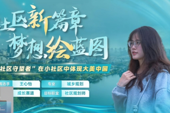 在成长赛道总决赛中,王心怡同学以“梦想绘蓝图,社区新篇章”为主题,从职业目标、行动成果、动态调整三个方面介绍了做一名“社区守望者”的职业愿景。她说道,规划设计的力量在于它能够为居民带来实实在在的改变和幸福感,在小社区中也能显现出大美中国。