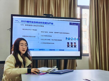 图为梁诗涵老师作就业形势分析