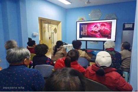 图为社区老人观看雷锋精神视频