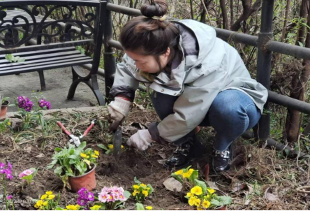 随后,志愿者与老人们一同种花,通过园艺活动增进代际交流,同时绿化社区环境,为居民生活增进一抹绿色。志愿者们先耐心地为老人们详细介绍各种花卉的特点、种植方法以及各种工具的使用方式,然后和老人们一同动手参与种植,整个过程轻松愉悦,大家都得到了身心的放松。