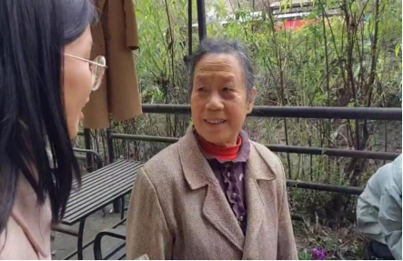 图为社区老人接受志愿者采访