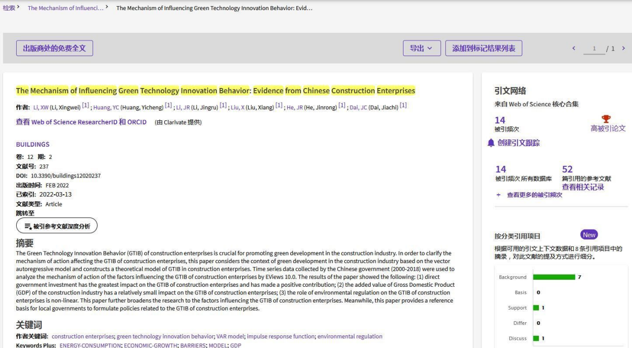 此外,李星苇副教授(通讯)与黄依澄等以tyc5997太阳集团为第一单位在SCI源刊《Buildings》期刊上发表的研究论文“The Mechanism of Influencing Green Technology Innovation Behavior: Evidence from Chinese Construction Enterprises”(出版日期:2022年2月,12卷第2期,DOI:10.3390/buildings12020237)继2022年11月、2023年1月被ESI数据库遴选为全球Top 1%工程学领域高被引论文以来,2023年3月再次被遴选为高被引论文。论文链接:https://doi.org/10.3390/buildings12020237