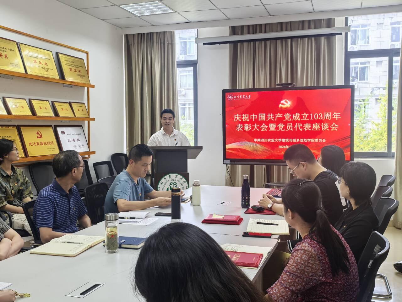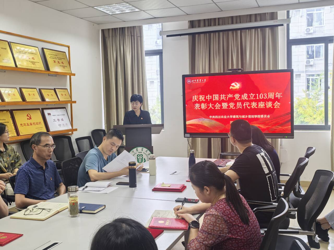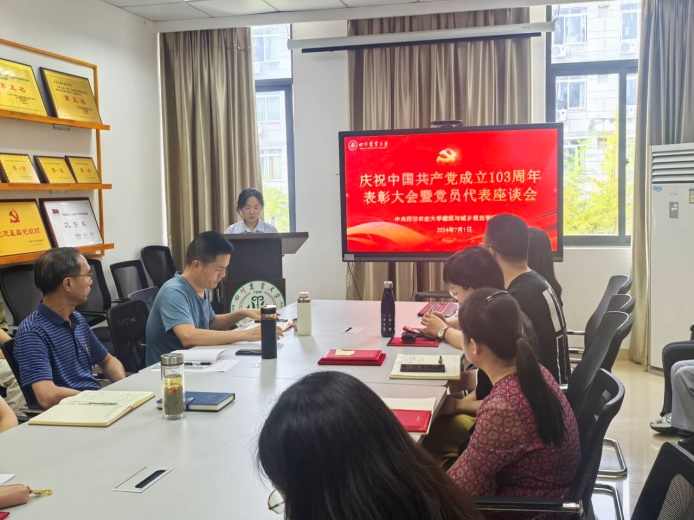 7月1日下午,建筑与城乡规划学院在2C307举行庆祝中国共产党成立103周年表彰大会暨党员代表座谈会。学院院长曹云忠、党委书记申琼、党委副书记付刚及各党支部书记、受表彰师生参会,会议由学院党委副书记付刚主持。
