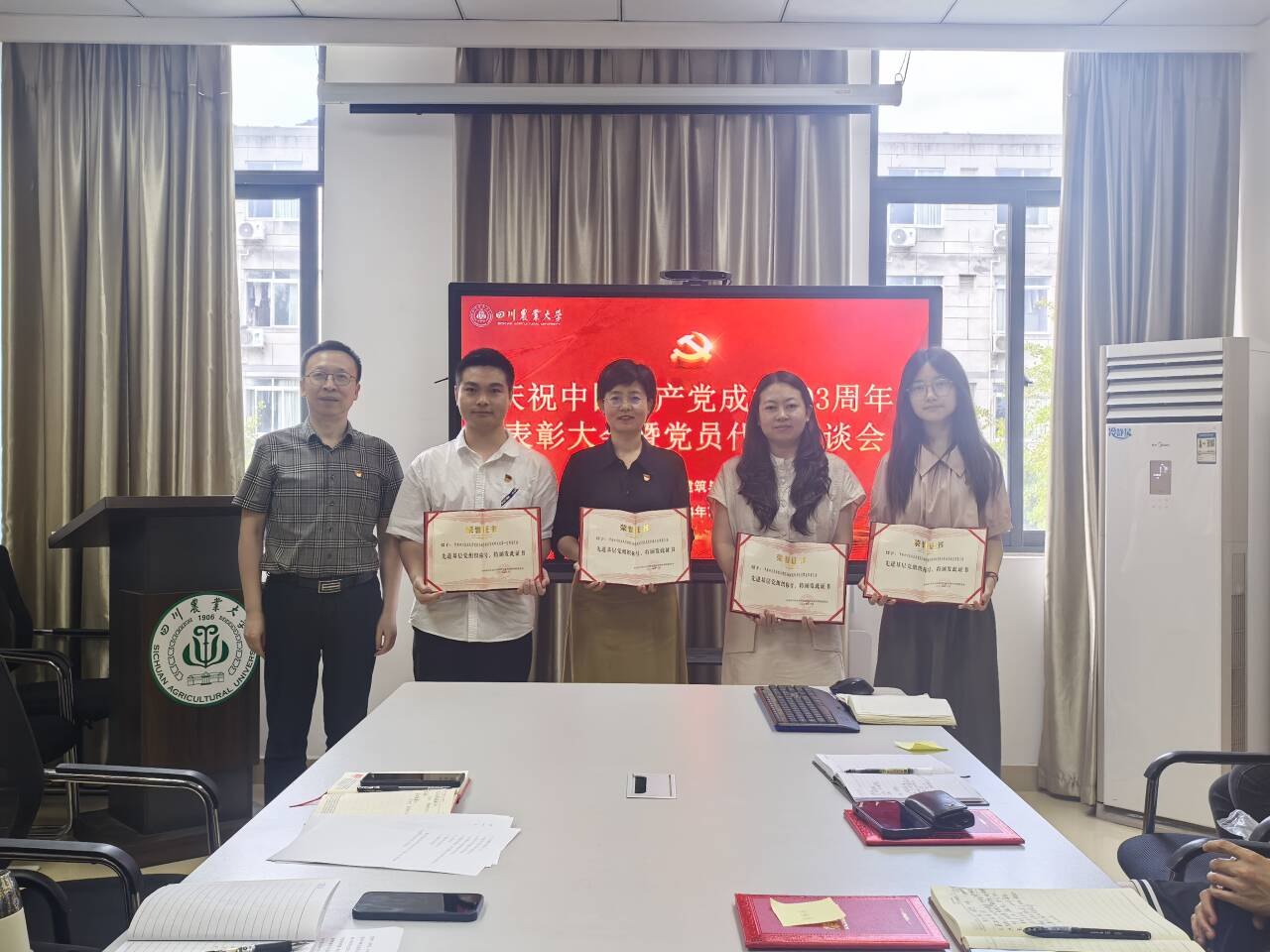 申琼代表学院党委,向全体党员同志致以节日的问候!向受到表彰的先进集体和优秀个人表示祝贺!他传达了学校党委书记庄天慧在庆祝中国共产党成立103周年座谈会上的讲话精神,面对新形势新任务,要以“时不我待”的紧迫感,“舍我其谁”的责任感,“功成有我”的使命感,按照“四个聚焦”,即聚焦思想引领、政治生态、基层基础、发展质量,不断提升党建引领水平,为建设一流农大、促进学院高质量发展作贡献。