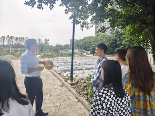 图 1 侯超平老师向党员讲解中学实践基地情况