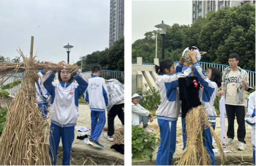 图2 川大附中的同学们制作稻草人骨架