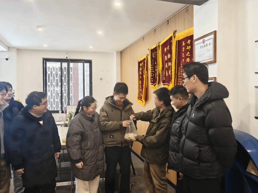 饺子蒸熟后,支部并未止步于内部分享,而是组织开展了一次有温度的延伸活动——将部分热气腾腾的饺子分装打包,由党员代表送往学院正在自习室紧张备考的学子,为奋战在考研一线的学子们送上冬日的温暖与党组织的关怀。这一举动不仅传递了同学情、组织爱,也进一步强化了党员的服务意识和奉献精神,让主题党日活动更接地气、更暖人心。