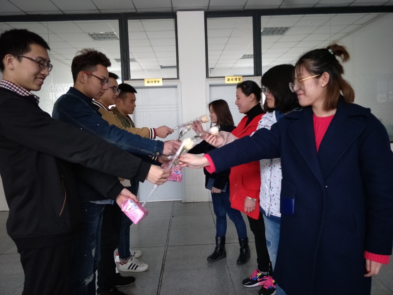 体育部的小伙伴们贴心地为部门女生准备了鲜花和卫生巾,将美丽和健康一起紧紧黏在一起,亲手送到了每个女同学的手中。