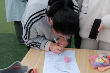 图为同学签署安全承诺书