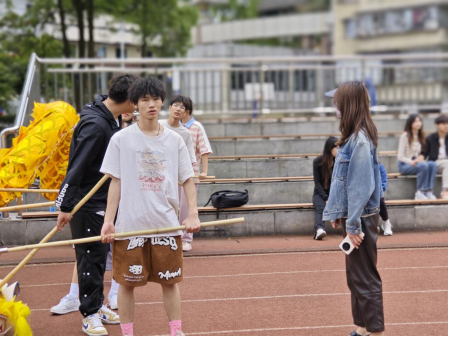 扎实训练,精心设计。为确保能呈现出最佳效果,学院对训练时间及方式严格要求,认真准备,按照“先分组、后集体”的方式保证效率、提高整齐度,分“中心团+舞龙+打鼓+双截棍”四部分内容进行教学及练习,后期集中训练队形和配合变换。无论是变换多样的队形,还是整齐划一的动作,都凝聚了全体队员无数次的汗水和努力。