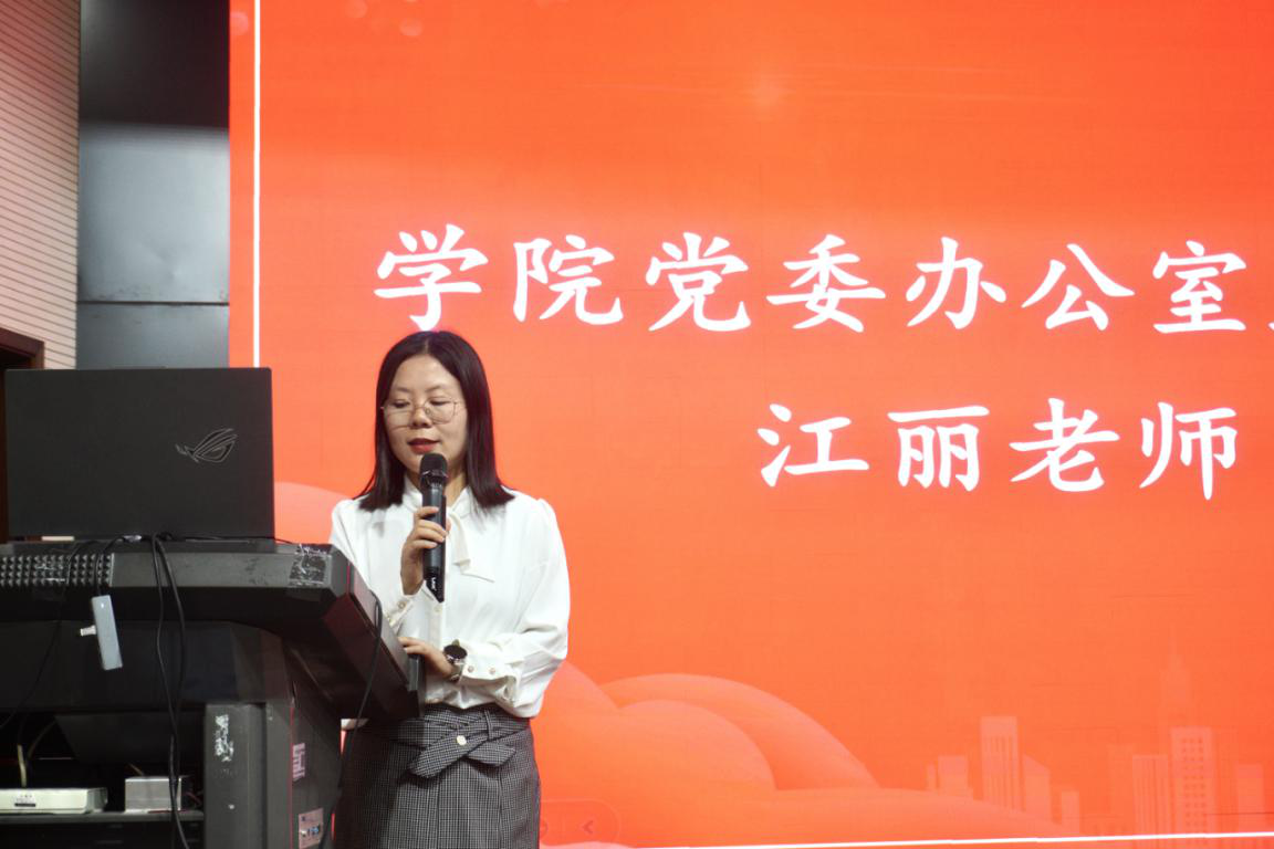 图为我院学委办公室主任兼团委书记江丽发言