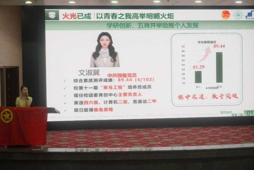 在活动的最后,团支部邀请优秀学姐文淑冀进行大学经验分享,号召新生同学们在大学生活中找准目标,砥砺前行;并用研支团的亲身经历鼓励广大青年团员将个人梦想融入国家发展大局,用青春的智慧与汗水为现代化建设贡献力量,展现青年担当。