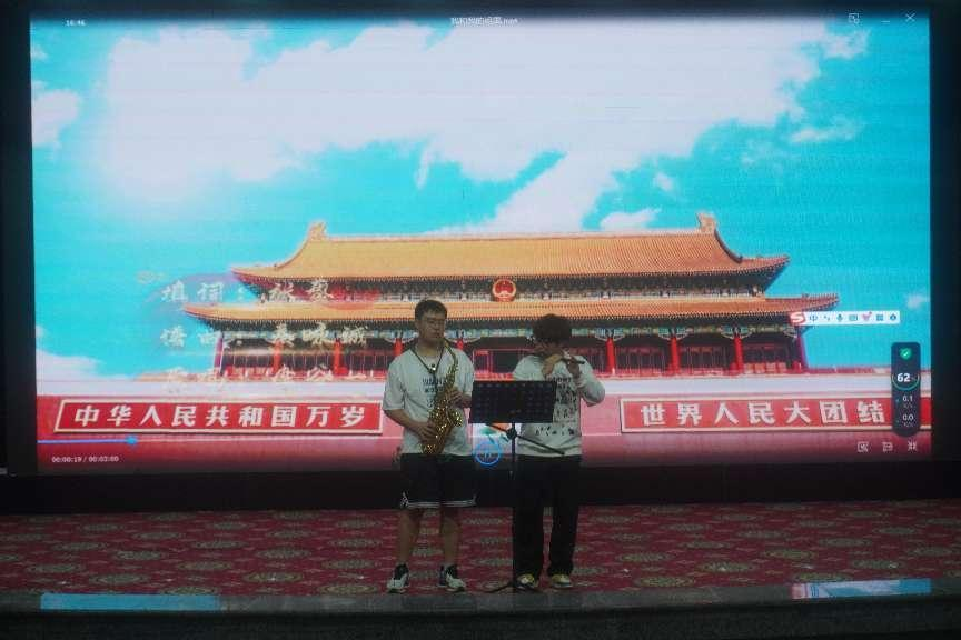 在新中国七五华诞之际,为表达新时代青年与国家之间的紧密联系,团支部邀请张茹俊、马思博同学带来乐器演奏《我和我的祖国》。悠扬的曲调极具感染力,激励着广大青年团员学习会议精神,弘扬爱国情怀。