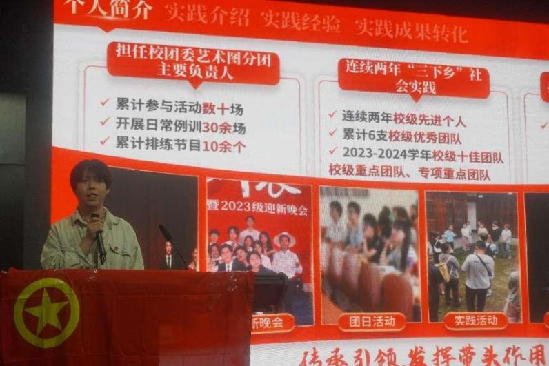 为鼓励广大青年团员在“科创乡村”中成长历练,发挥青年实干家的榜样力量,团支部邀请社会实践十佳团队“文耕筑魂”团队负责人刘政君同学、青志赛省级铜奖团队负责人何旭阳同学进行宣讲,帮助广大新生同学了解到社会实践的途径与重要性,并对新生开展实践工作提出了许多建议与指导,鼓励广大青年团员积极参与科技创新、乡村振兴、绿色发展等社会实践,在各领域各方面勇当排头兵和生力军。