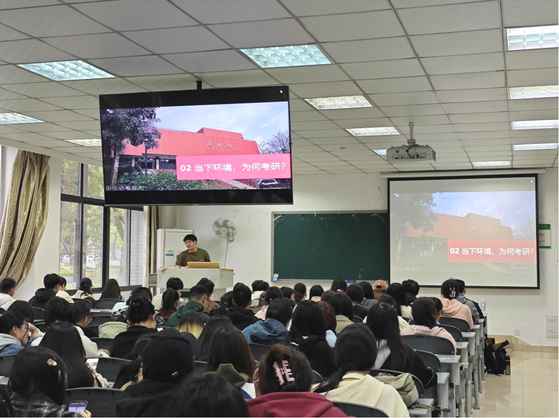 为向广大有意向考研深造的学生提供宝贵的指导和建议,帮助学生了解考研流程、掌握科学备考方法,我院于2024年10月11日在2A101举办了一场关于考研经验分享的专题讲座。此次讲座邀请了现已在重庆大学就读的优秀毕业生杨易,对考研备考进行详尽讲解。