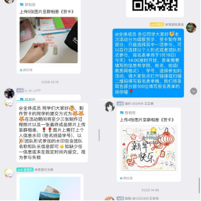 本次活动采取贺卡制作与唱歌贺岁两种形式。活动期间,各位同学根据自身兴趣及特长自由选择参与形式,精心准备活动作品,积极参与其中。活动群内,相关工作人员耐心讲解活动细则,秉持认真负责的态度,全力支持活动的开展。