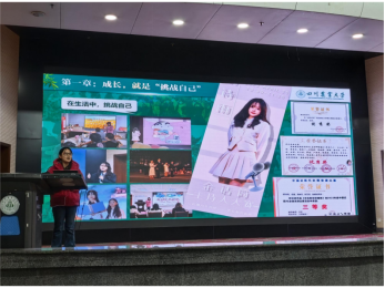图示为“优秀学习标兵”胡诗雨学姐分享现场