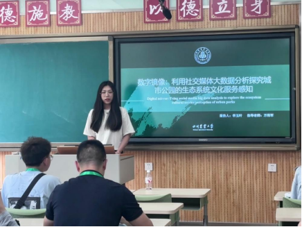 万将军在“生态系统服务应用及人类福祉提升”分会场作了题为“探索平衡:成都市城市生态系统健康与服务在空间正义视角下的新方法”的学术报告,报告以城市生态系统为背景,选取成都市作为案例,目标是在空间正义的理论框架下,创新构建一个综合评估城市生态系统健康及服务供需的模型。报告得到参会专家评委与听众的高度评价。吴雄在“面向公平与福祉的城市交通地理”分会场进行了题为“中国不同类型城市交通碳排放影响因素及交互作用分析”的学术报告,得到陕西师范大学黄晓燕教授的点评,并提出了优化建议。李玉叶在“生态系统服务应用及人类福祉提升”分会场进行了题为“数字镜像:利用社交媒体大数据分析探究城市公园的生态系统文化服务感知”的学术报告,并与中国环境科学研究院王亚慧教授进行了讨论交流。